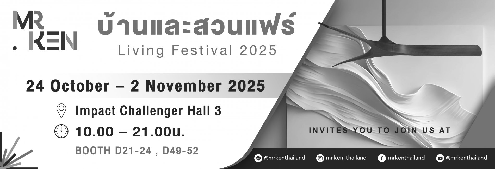 ในช่วงหลายปีที่ผ่านมา  MR.KEN ได้กลายเป็นแบรนด์ชั้นนำในตลาดพัดลมเพดานซึ่งได้รับความไว้วางใจจากนักออกแบบชั้นนำ วิสัยทัศน์แห่งการเปลี่ยนแปลง MR.KEN ได้รวบรวมแนวคิดด้านพัดลมเพดาน และการออกแบบที่เป็นนวัตกรรมใหม่ให้เข้ากับงานศิลปะและงานตกแต่งร่วมสมัยสะท้อนให้เห็นถึงบุคลิกภาพและวิถีชีวิต MR.KEN จึงไม่ใช่แค่พัดลมเพดาน ที่ให้ประโยชน์ด้านลมเย็นเพียงอย่างเดียว แต่ยังให้สุนทรียภาพแห่งความงามที่เคลื่อนไหวในอากาศ